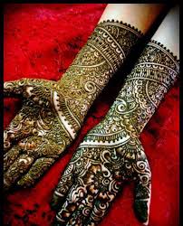 Typically there are two types of styles, Arabic and Indian. Arabic henna is full of flowers and curves and bigger motifs. Indian mehndi has fine lines, symmetrical patterns, and is full of peacocks (moor), mangos (aam), and groom (bhaarat) motifs.